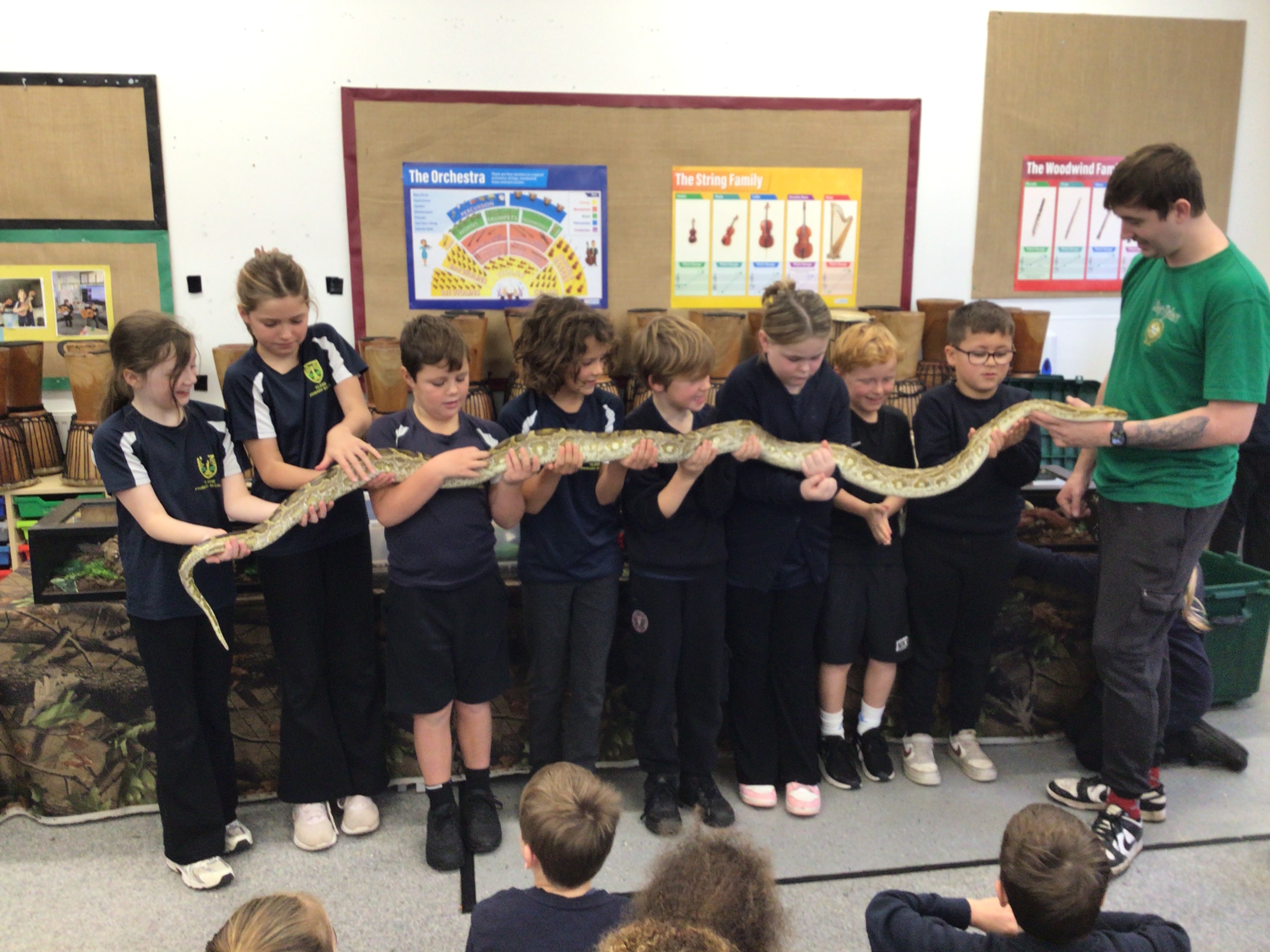 Thanks to parent contributions and PTA support the Y4 teachers were able to arrange a fabulous visit from Reptylers to enrich our learning about different animal classifications and habitats.